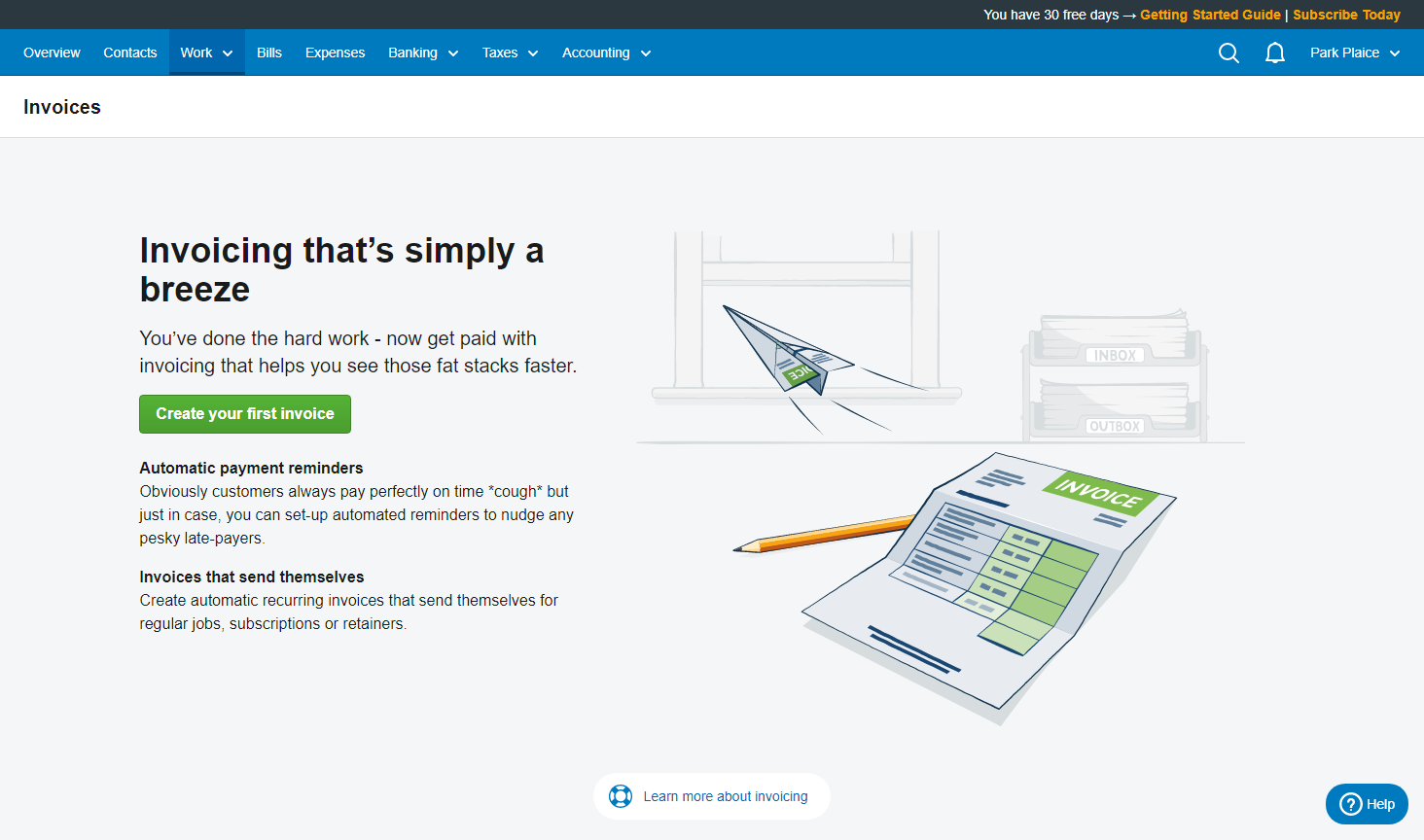 There’s no start-up assistant like you find with some of their competitors, but the homepage does signpost the places most people are likely to start (invoicing, setting up bank feeds, and so on). We also liked the brief intro that displays each time you visit a feature in the software for the first time. It’s very useful for showing users what they can do to make the most of the tools available.