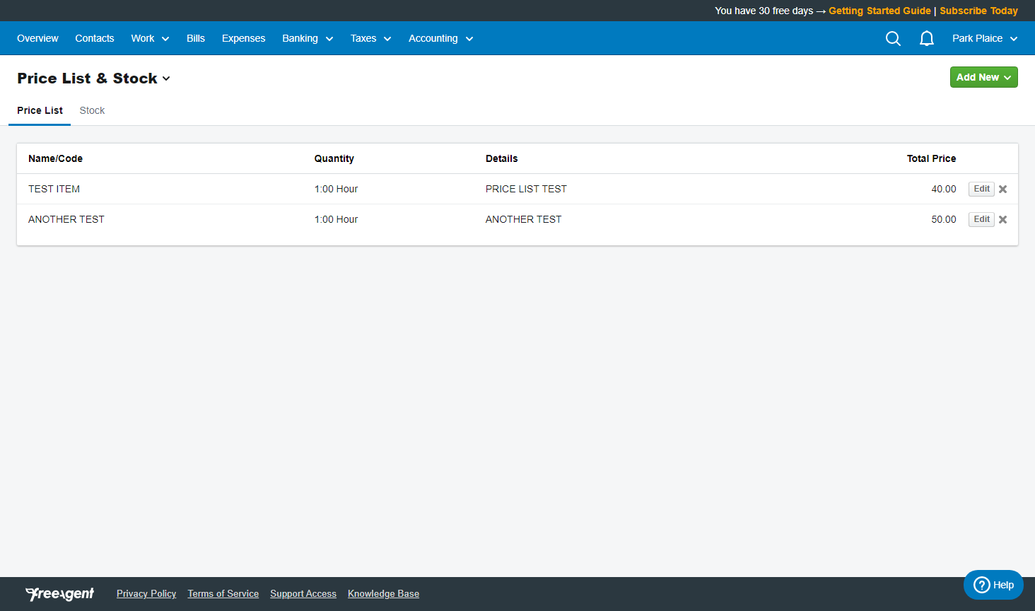 After some internet research and wandering through their support centre we found the feature hiding in their settings menu. You won’t see the option to autofill your invoices until you create an entry on your price list, though it will speed up your data entry once you’ve added something to it. It’s not a very user-friendly feature beyond that either, though.